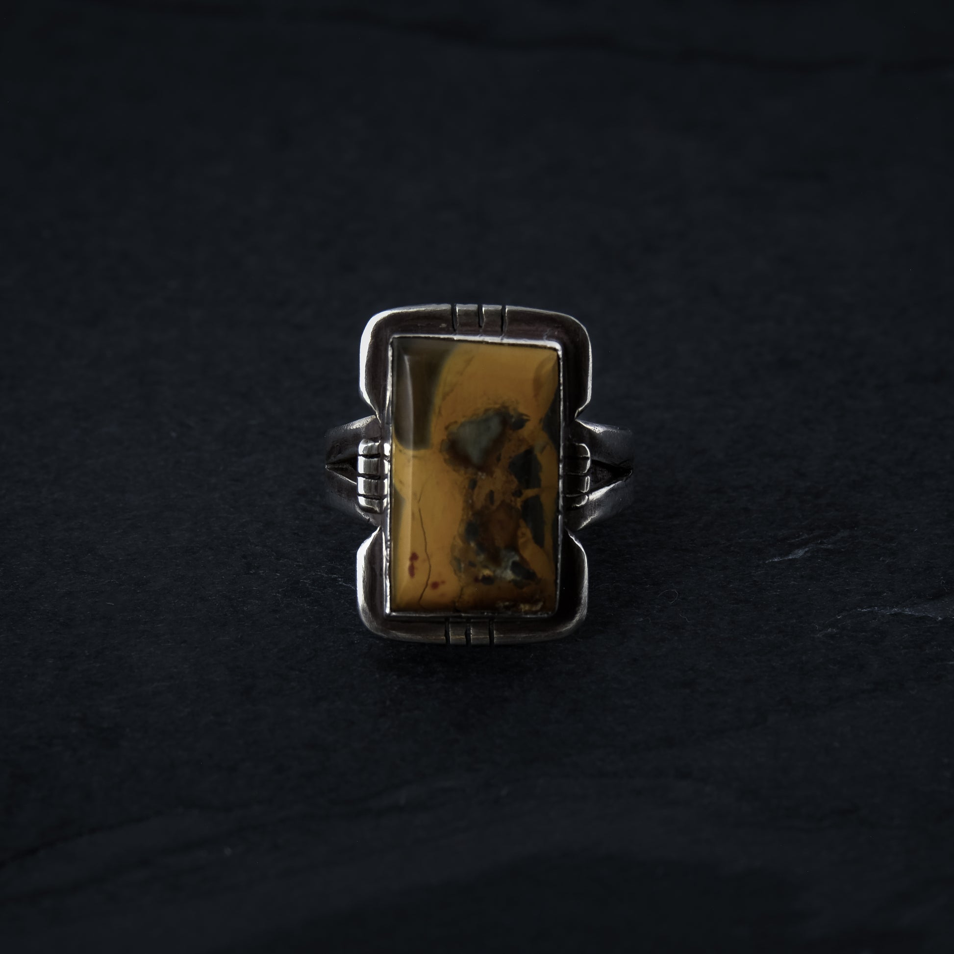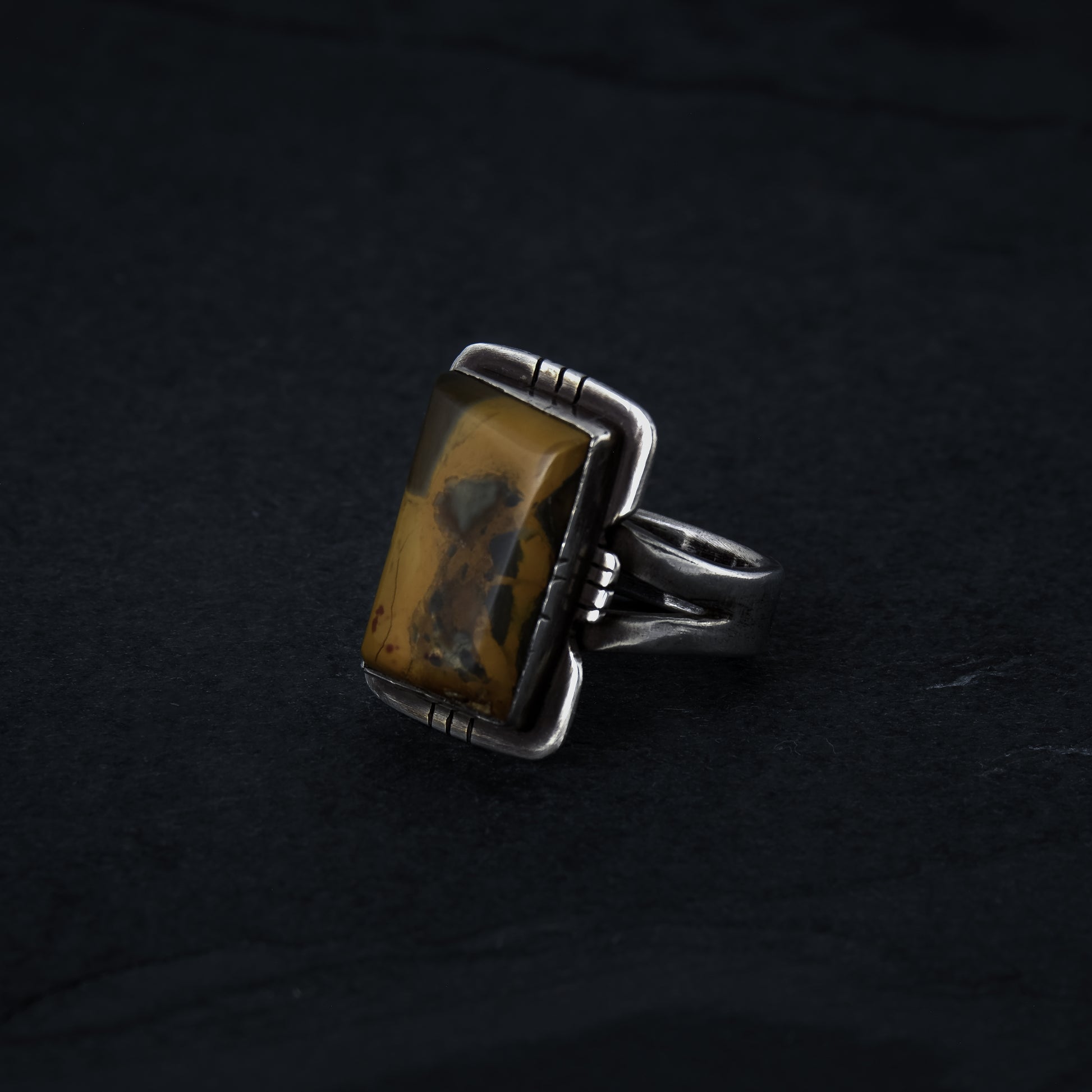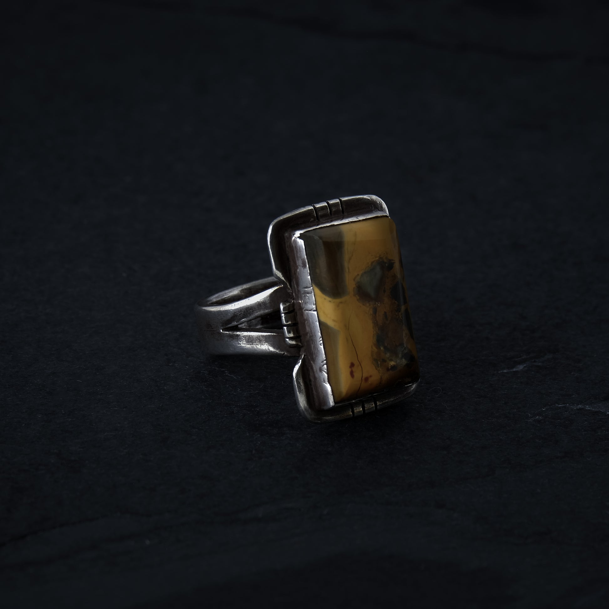 Petrified wood set in polished sterling silver. One of a kind, available only in size 11.