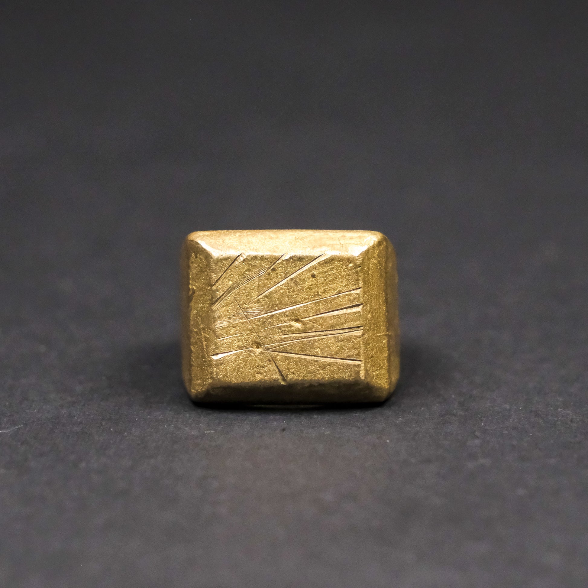 Faceted square signet with a comfortable fit. Brushed finish with a textured face. Each piece is hand-made and will have its own unique characteristics, no two will be exactly the same.